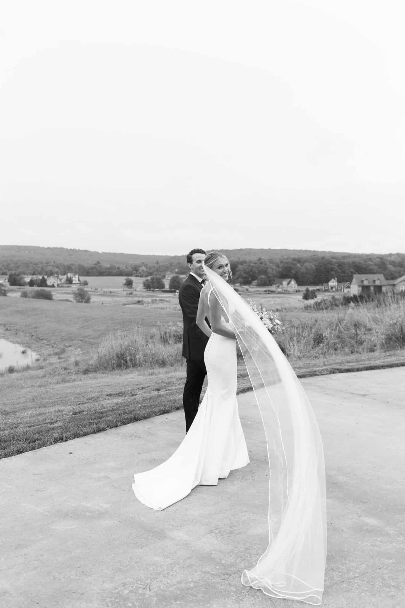 Set against open sky and mountain backdrop, the Rock Runway ceremony site at The Red Barn Inn offers a striking and refined setting for outdoor weddings in Deep Creek Lake. A natural stone-lined aisle leads guests toward an elevated ceremony platform, creating a dramatic yet timeless approach that photographs beautifully in every season.